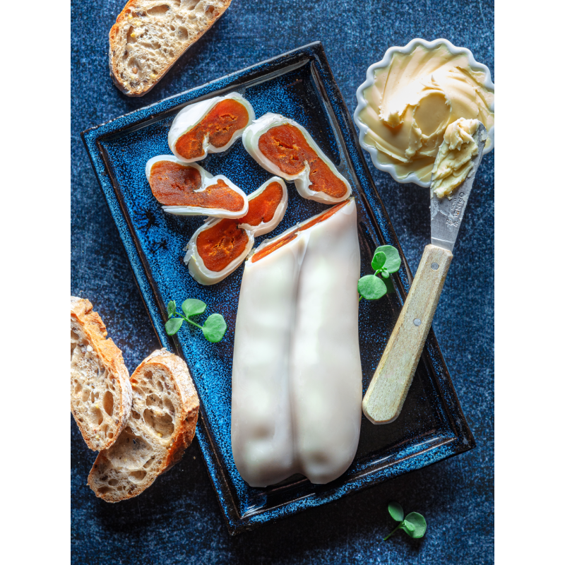 Composée d'oeufs de mulets salés, séchés, pressés puis recouverts de cire.