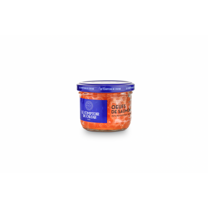 Ingrédients : OEUFS DE SAUMON * keta du pacifique (97%) (oncorhynchus keta), sel de Guérande.