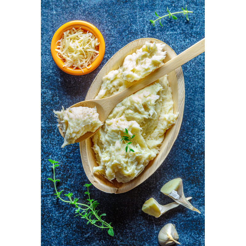 NOTRE RECETTE : MORUE, pomme de terre, LAIT, BEURRE, ail, huile d’olive, sel, poivre