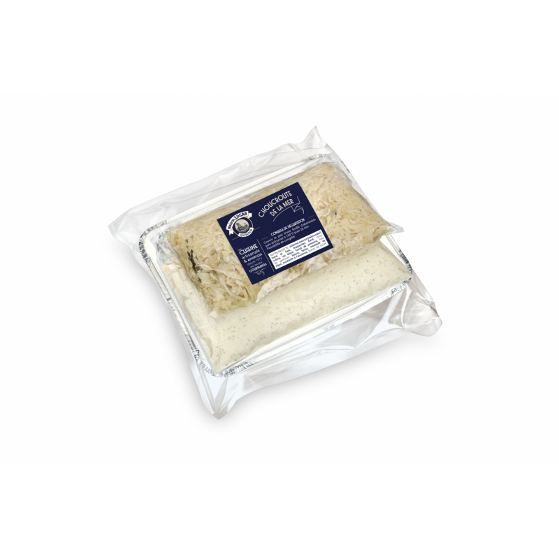 Vous recevez votre recette en "kit" : un conditionnement pour le chou, un autre pour le poisson, un dernier pour la sauce. Il vous reste à choisir votre plus beau plat : y disposer le chou, puis les poissons sur le dessus. Réchauffez la sauce à la casserole et nappez le tout.