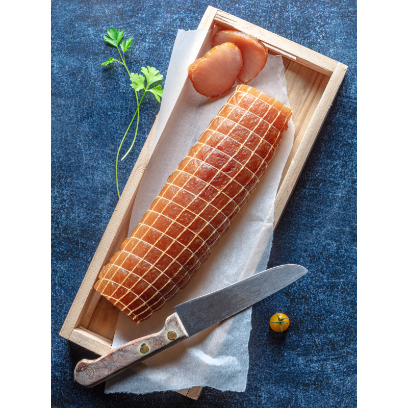 Notre saucisson de thon en longe… Le morceau entier pour une entrée XXL. Mêmes caractéristiques que notre saucisson de thon blanc fumé en morceau puisqu'il s'agit de la même pièce sans découpe.