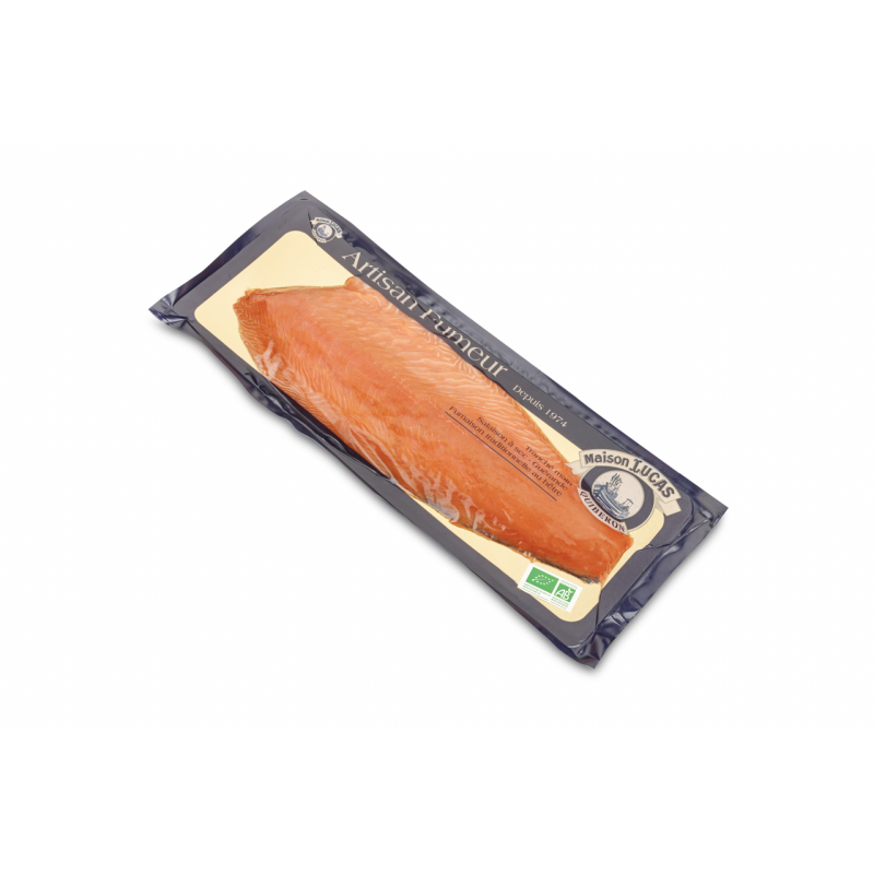 Ingrédients : SAUMON BIOLOGIQUE FUMÉ* (salmo salar), sel de Guérande. Fumaison au hêtre vert et tranché à la main.