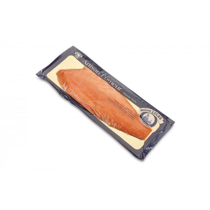 Filet entièrement tranché à la main, vous ravirez vos invités par la qualité artisanale de ce saumon et par sa présentation soignée sur plaque dorée (15 à 18 belles tranches). Il est dit "reconstitué" car les tranches sont disposées sur plaque en reconstituant le filet tel qu’il l’était entier (non tranché).