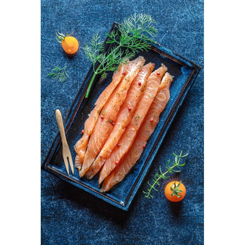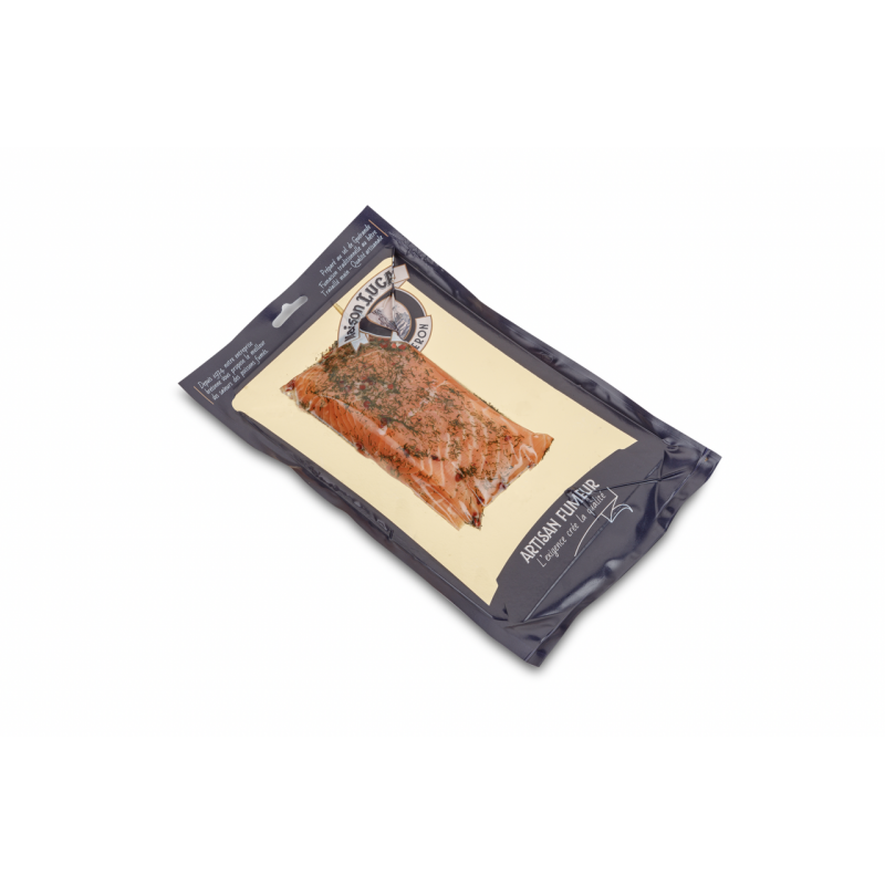 Recette d'origine scandinave : poisson frais légèrement salé et sucré, puis mariné à l'huile d'olive avec des baies roses et de l'aneth. Rajoutez un savoir-faire artisanal acquis depuis plus de 40 ans, un saumon de haute qualité... et vous obtenez une vraie gourmandise pour les amoureux du saumon et de son fondant !