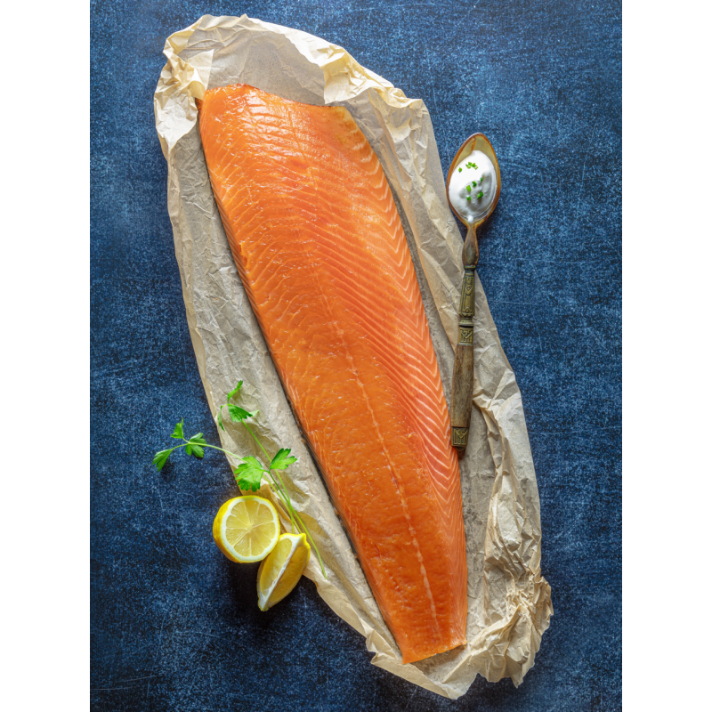 Ce filet de saumon entier non tranché est parfait pour vos recettes. Filet paré et désarrêté.